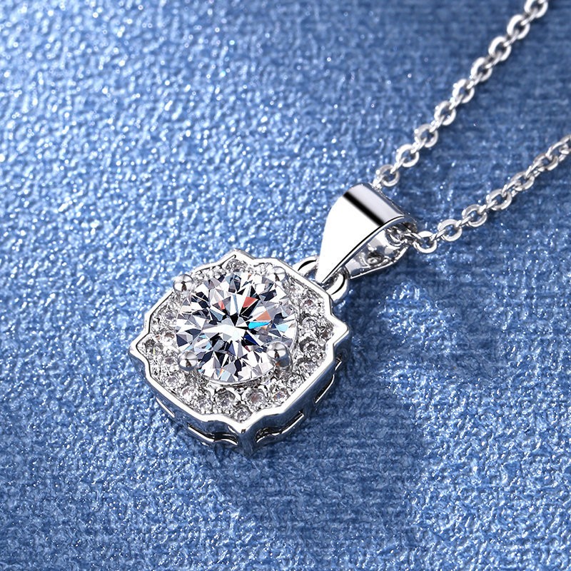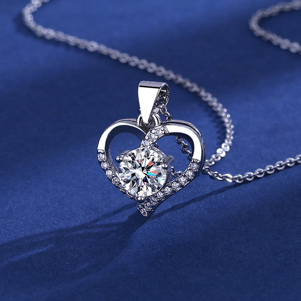 Love Design Silver Plated Mossanite Stone Necklace Female