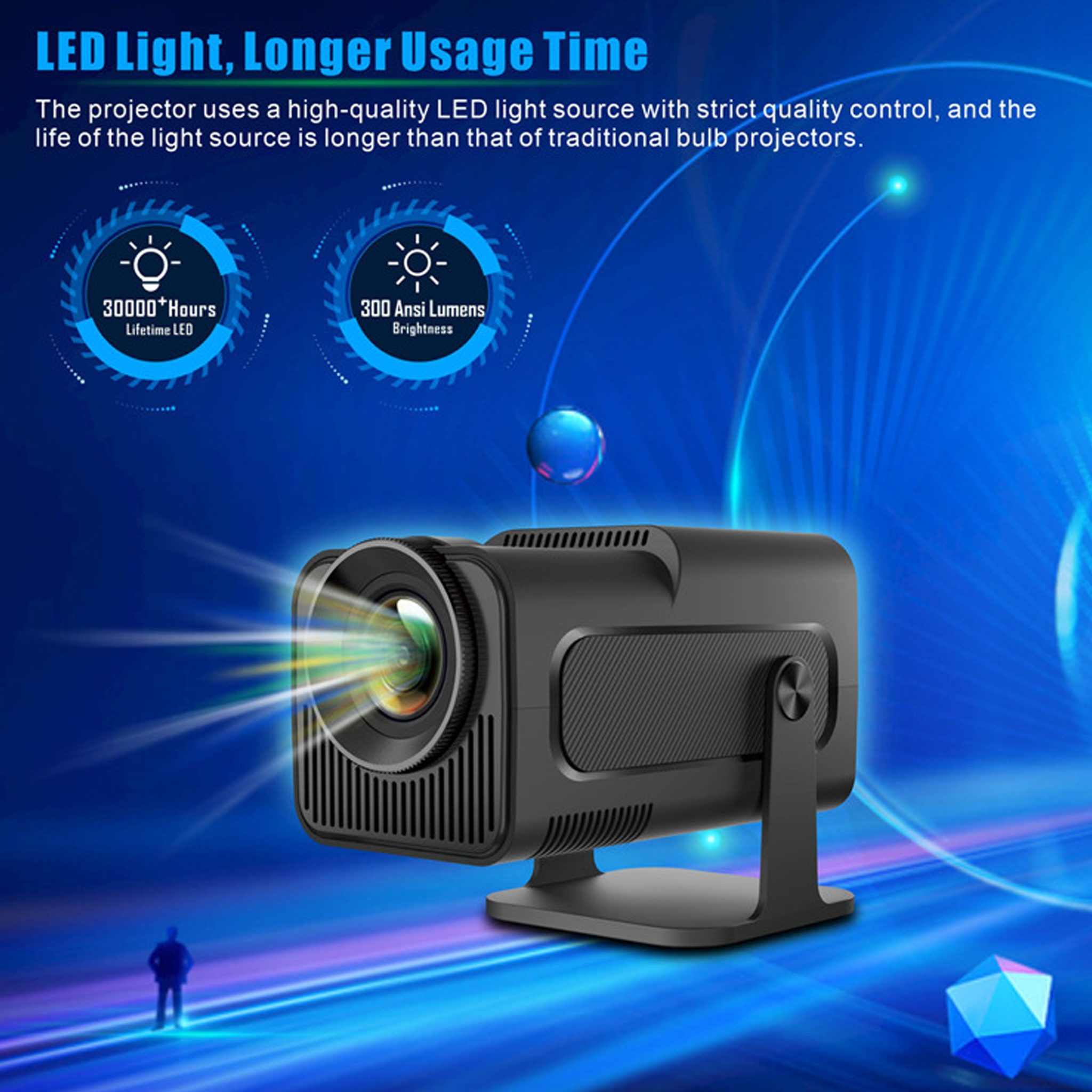 The Dual Wifi Smart Home Cinema mini Portable Projector is a compact and portable LCD projector designed for business presentations, educational use, and everyday multimedia viewing. With a native 720P resolution and support for up to 1080P and 4K input, it delivers clear visuals in a lightweight and easy to carry design.