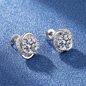 Diamond Cut 925 Silver Plated Four -Leaf Grass Earrings
