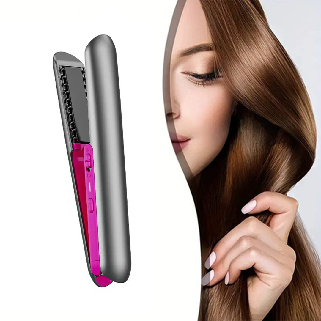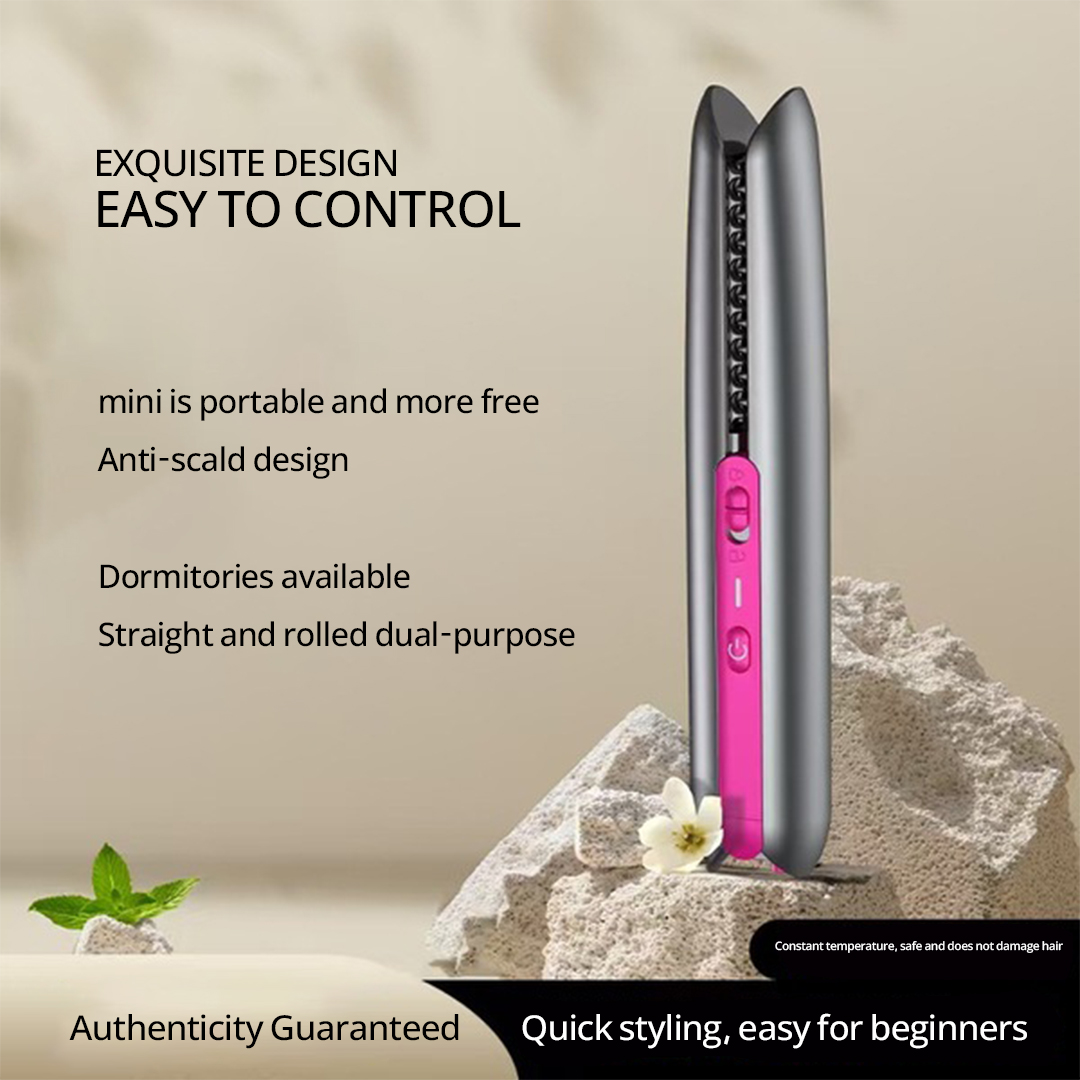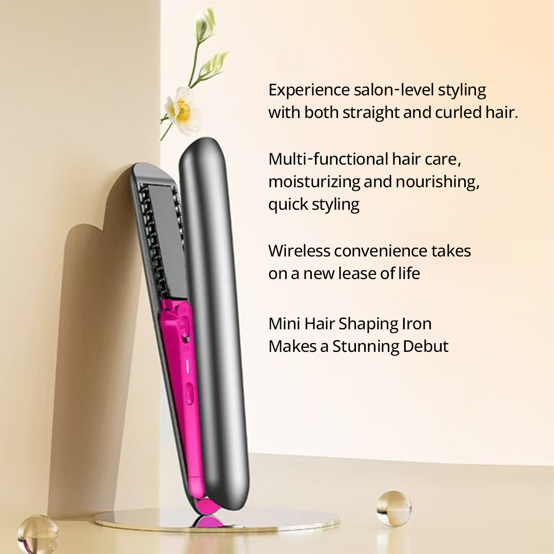Mini Portable Wireless 2-in-1 Hair Straightener, Curling Iron, Hair Comb and Hair Care Iron Plate
