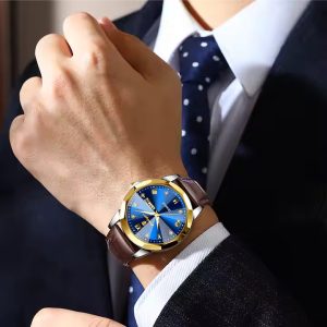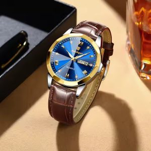 POEDAGAR Watches 810 Fashion Luxury Stainless Steel Diamond Quartz Watch Men Luminous Waterproof Date leather Wrist watch